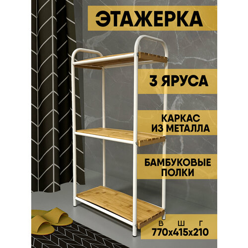 Стеллаж для хранения мелочей из металлического каркаса с бамбуковыми полками. Три широкие полки позволяют разместить большое количество различных мелочей. Подойдет для размещения на кухне, в ванной комнате, в гостиной или на балконе. Будет хорошо сочетаться с любым дизайном.