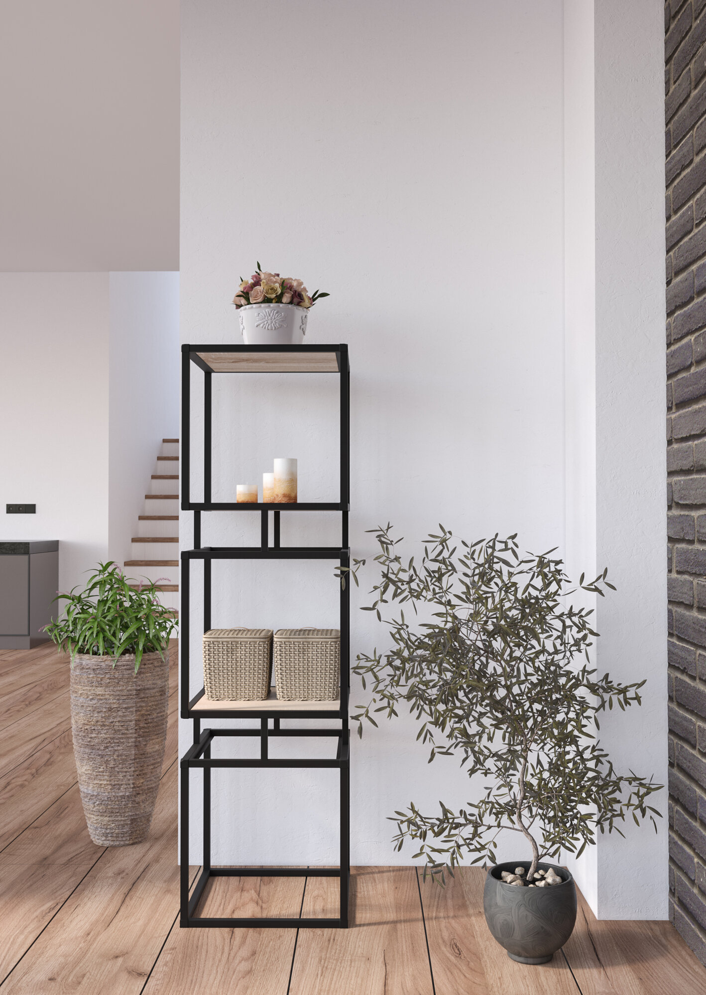 Стеллаж металлический ФЛАЙ с ЛДСП Дуб Сонома, черный матовый 40х40х140 см.: сравнение цен, характеристики, фото, актуальное наличие и цены.