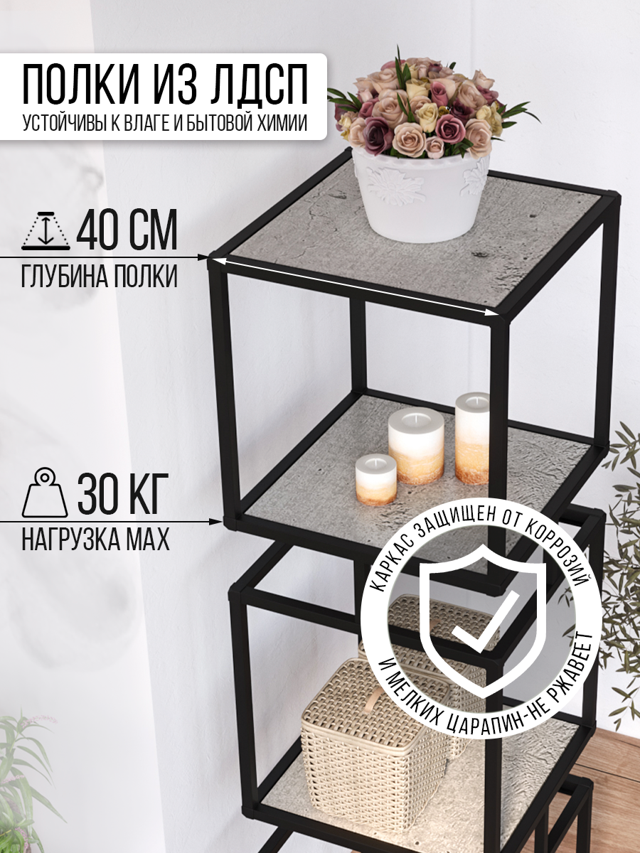 Стеллаж металлический ФЛАЙ с ЛДСП Метрополитена грей, черный муар 40х40х140 см: сравнение цен, характеристики, фото, актуальное наличие и цены.