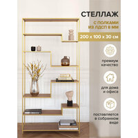 Купить Стеллаж лофт интерьерный для книг металлический, JAQLENE, золотой, ЛДСП Робиния с доставкой по всей России.