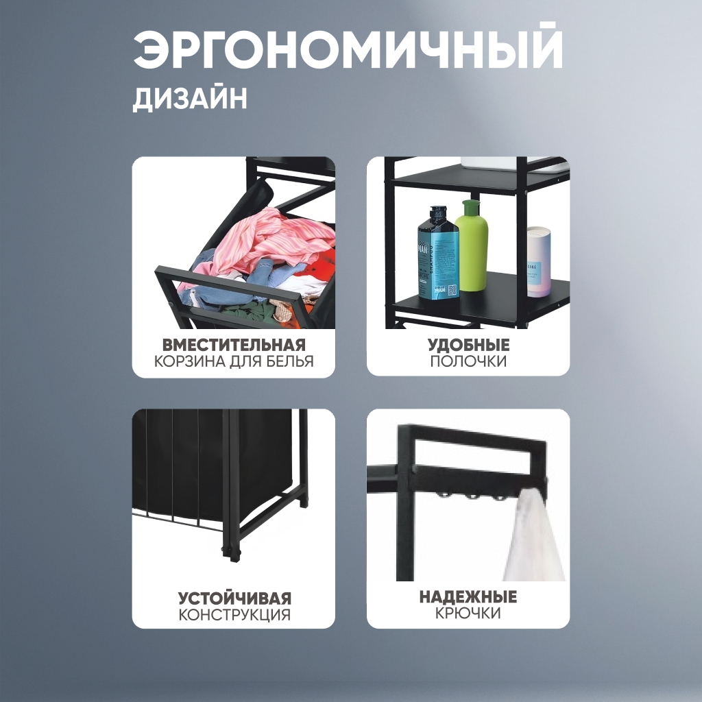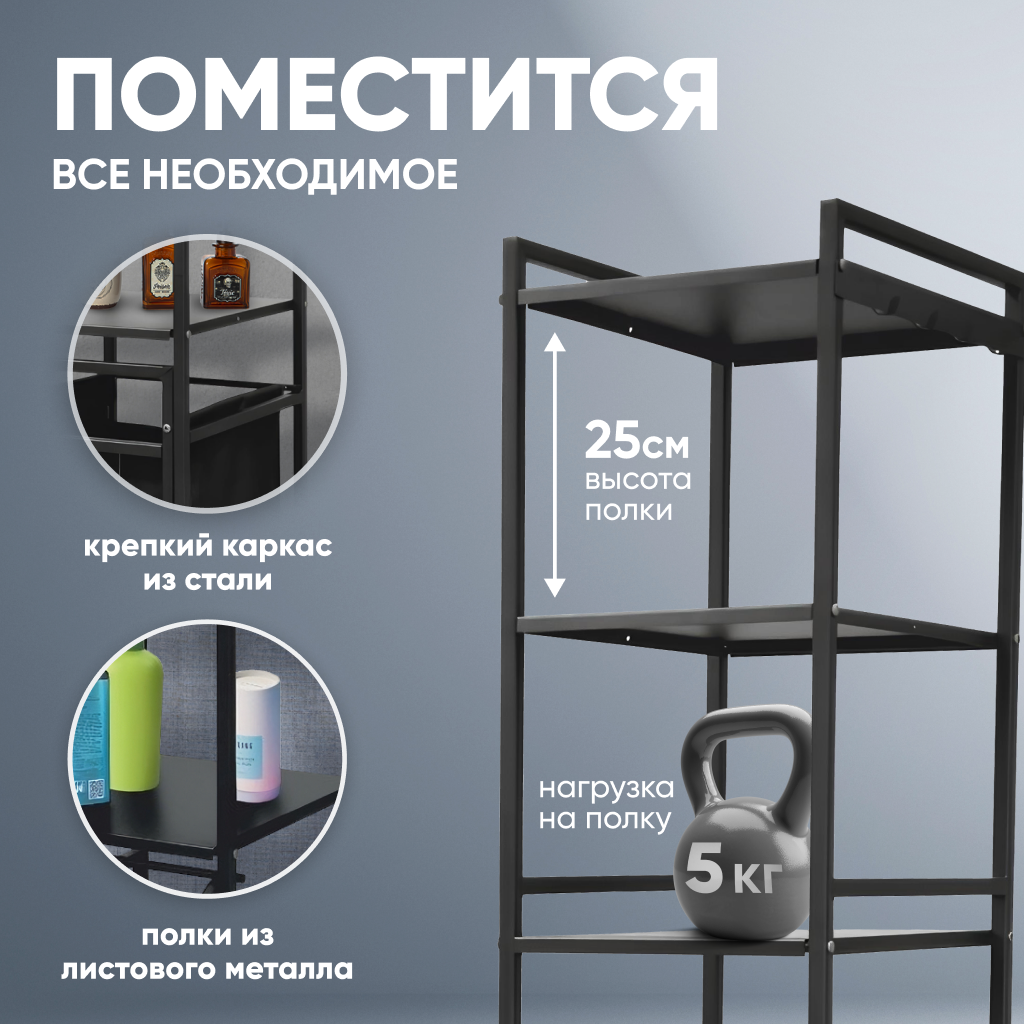 Стеллаж металлический Лофт Черный с 3 полками напольный, Этажерка для ванной с корзиной для белья, дома/дачи,150х35х30см: сравнение цен, характеристики, фото, актуальное наличие и цены.