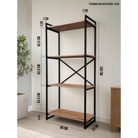Открытый напольный стеллаж с деревянными полками, выполненными из ламинированного ДСП коричневого цвета с текстурой «Дуб Вотан», отличается высокой надежностью благодаря черному матовому каркасу, изготовленному из усиленного металлического профиля 20x20 мм, что делает изделие прочным и практичным. Благодаря высокой надежности и устойчивости металлокаркаса, каждая полка выдержит нагрузку до 35 кг. Четыре яруса выдержат общий вес до 140 кг.