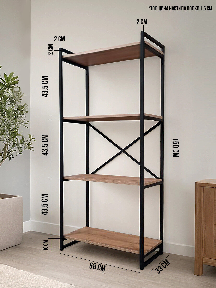 Компактный узкий мебельный мини стеллаж в 4 секции шириной 68 см и глубиной 33 см не занимает много места, прекрасно будет смотреться в маленьком коридоре или прихожей дома, в интерьере гостиной, в гардеробной для вещей, в торговом магазине для одежды, в кладовке для банок, в ванной и туалете, в комнате и гостинной. Впишется на балконе и лоджии, мебель на кухне для хранения кухонной посуды или кастрюль, так же можно использовать напольный стеллаж как подставку под микроволновку. Современная интерьерная мебель в стиле лофт придаёт особый шарм в спальне, а универсальная расцветка позволит установить вертикальный стеллаж loft в кабинете офиса под офисные документы в папках или установить принтер. Отличный вариант для дачи под рассаду, этажерка на пол для комнатных цветов и растений.