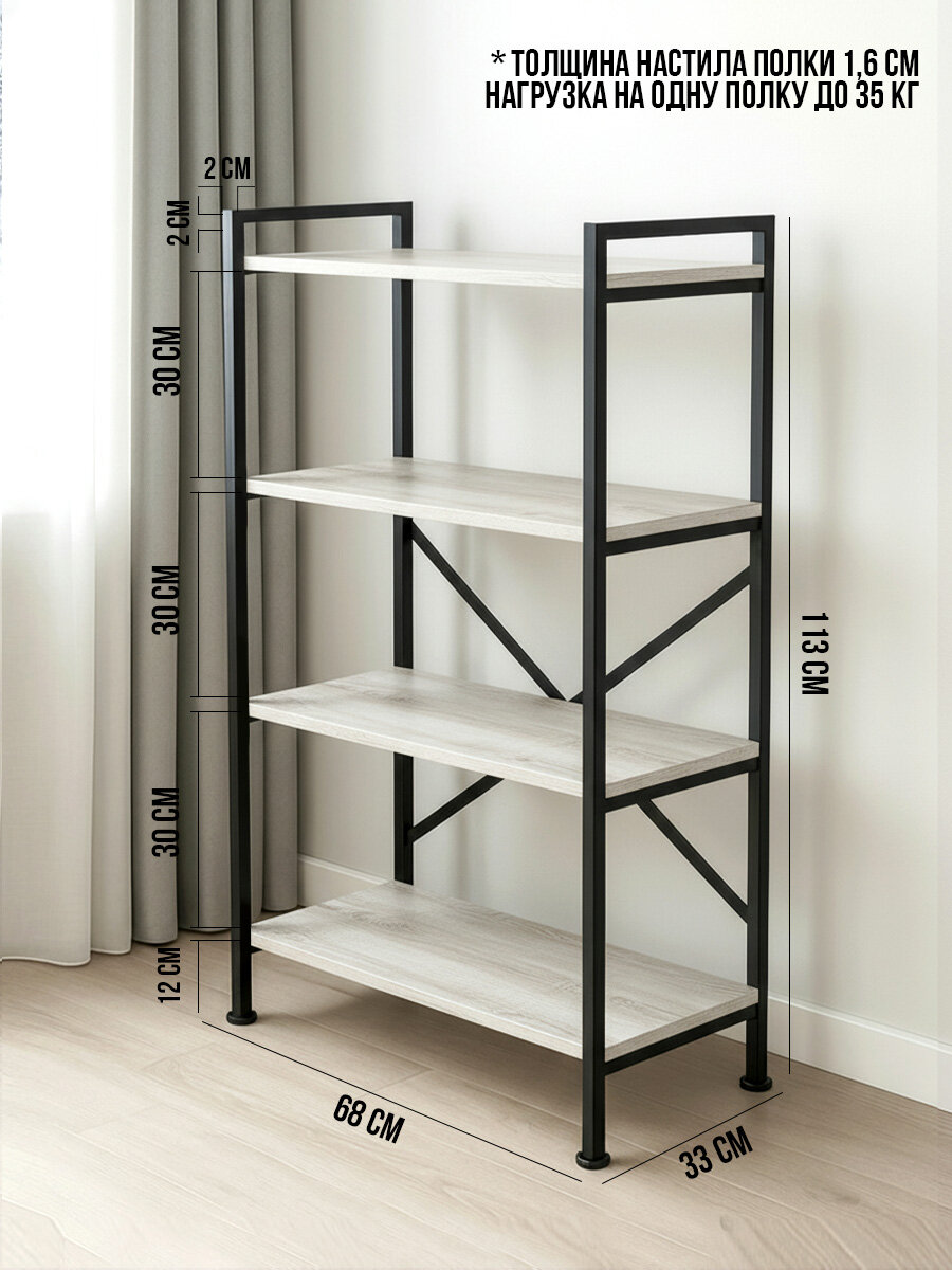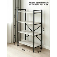 Компактный узкий мебельный мини стеллаж в 4 секции шириной 68 см и глубиной 33 см не занимает много места, прекрасно будет смотреться в маленьком коридоре или прихожей дома, в интерьере гостиной, в гардеробной для вещей, в торговом магазине для одежды, в кладовке для банок, в ванной и туалете, в комнате и гостинной. Впишется на балконе и лоджии, мебель на кухне для хранения кухонной посуды или кастрюль. Современная интерьерная мебель в стиле лофт придаёт особый шарм в спальне, а универсальная расцветка позволит установить вертикальный стеллаж loft в кабинете офиса под офисные документы в папках или установить принтер. Отличный вариант для дачи под рассаду, этажерка на пол для комнатных цветов и растений.