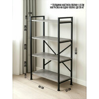 Компактный узкий мебельный мини стеллаж в 4 секции шириной 68 см и глубиной 33 см не занимает много места, прекрасно будет смотреться в маленьком коридоре или прихожей дома, в интерьере гостиной, в гардеробной для вещей, в торговом магазине для одежды, в кладовке для банок, в ванной и туалете, в комнате и гостинной. Впишется на балконе и лоджии, мебель на кухне для хранения кухонной посуды или кастрюль. Современная интерьерная мебель в стиле лофт придаёт особый шарм в спальне, а универсальная расцветка позволит установить вертикальный стеллаж loft в кабинете офиса под офисные документы в папках или установить принтер. Отличный вариант для дачи под рассаду, этажерка на пол для комнатных цветов и растений.