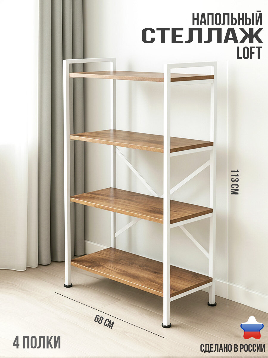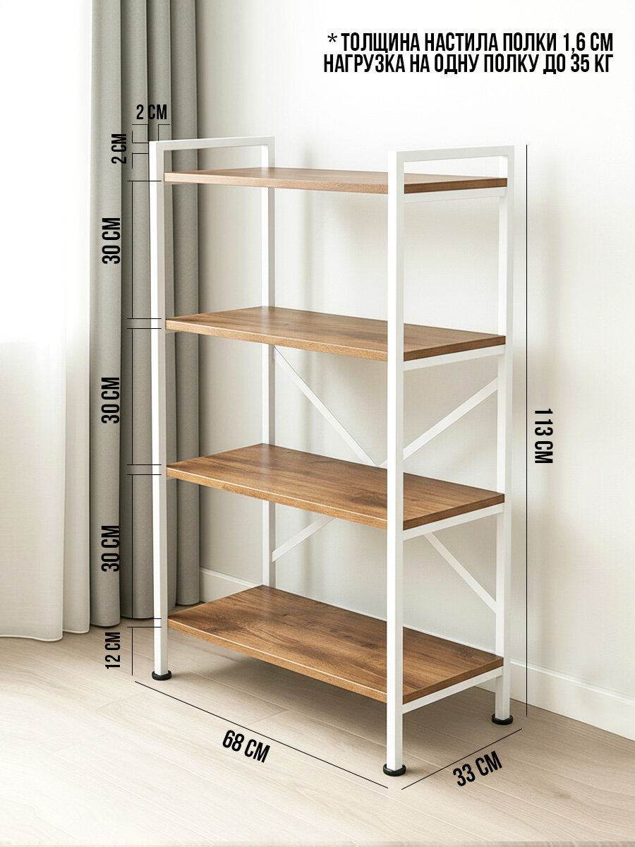 Компактный узкий мебельный мини стеллаж в 4 секции шириной 68 см и глубиной 33 см не занимает много места, прекрасно будет смотреться в маленьком коридоре или прихожей дома, в интерьере гостиной, в гардеробной для вещей, в торговом магазине для одежды, в кладовке для банок, в ванной и туалете, в комнате и гостинной. Впишется на балконе и лоджии, мебель на кухне для хранения кухонной посуды или кастрюль. Современная интерьерная мебель в стиле лофт придаёт особый шарм в спальне, а универсальная расцветка позволит установить вертикальный стеллаж loft в кабинете офиса под офисные документы в папках или установить принтер. Отличный вариант для дачи под рассаду, этажерка на пол для комнатных цветов и растений.