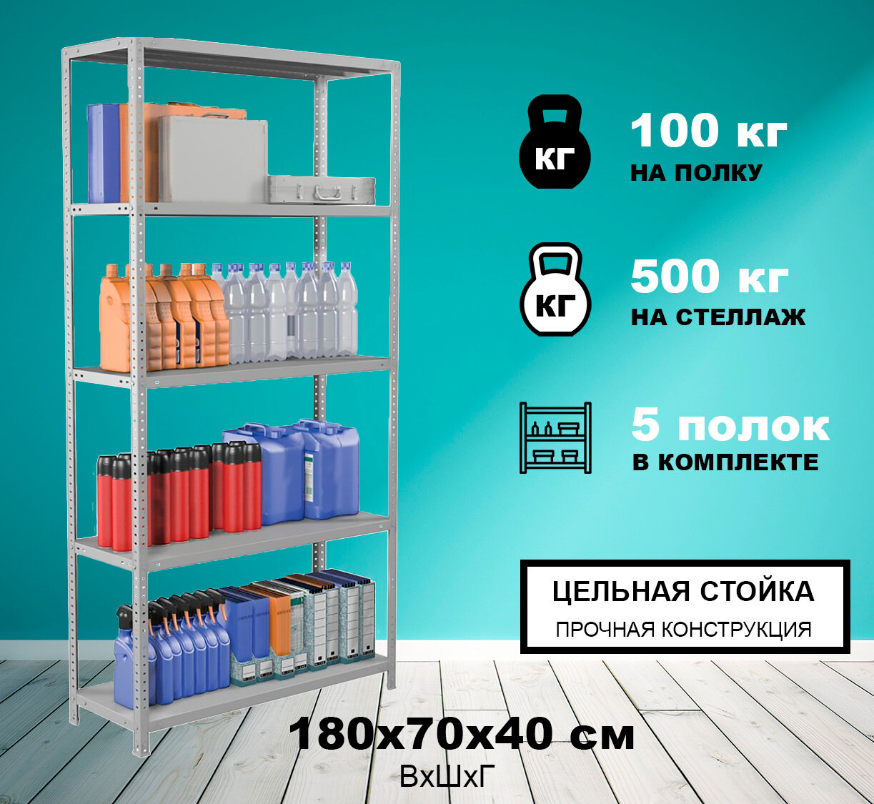 Купить Стеллаж металлический Метреал СтМ-500 180x70x40 см, 5 полок, серый, (В*Г-180x72x42) с доставкой по всей России.