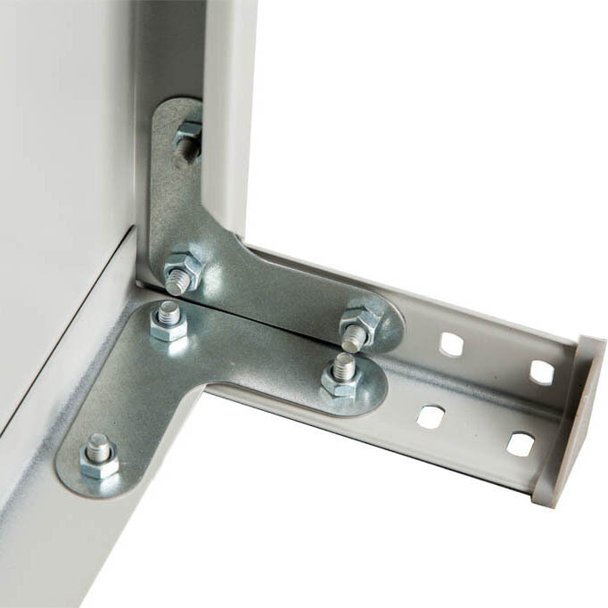 Важно! Верхняя и нижняя полки крепятся через Г-образные усилители, остальные полки напрямую к стойке.