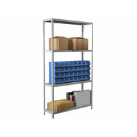 Металлические стеллажи состоят из стоек, полок, подпятников и крепежа. Все элементы бытовых стеллажей покрыты порошковой краской серого цвета. В комплекте идут 16 уголков жесткости, которые устанавливаются на верхнюю и нижнюю полки. Каждая полка складского стеллажа оборудована ребром жесткости и имеет возможность переставляться по высоте с шагом 25 мм. Стойки модульного стеллажа являются цельными.