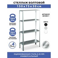 Стеллаж металлический болтовой GASTRORAG GR-005-1, 4 полки, размеры 150х75х30 см, этажерка для кухни, мебель лофт, подставка для цветов и рассады, система хранения для дома, дачи и гаража.: сравнение цен, характеристики, фото, актуальное наличие и цены.