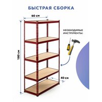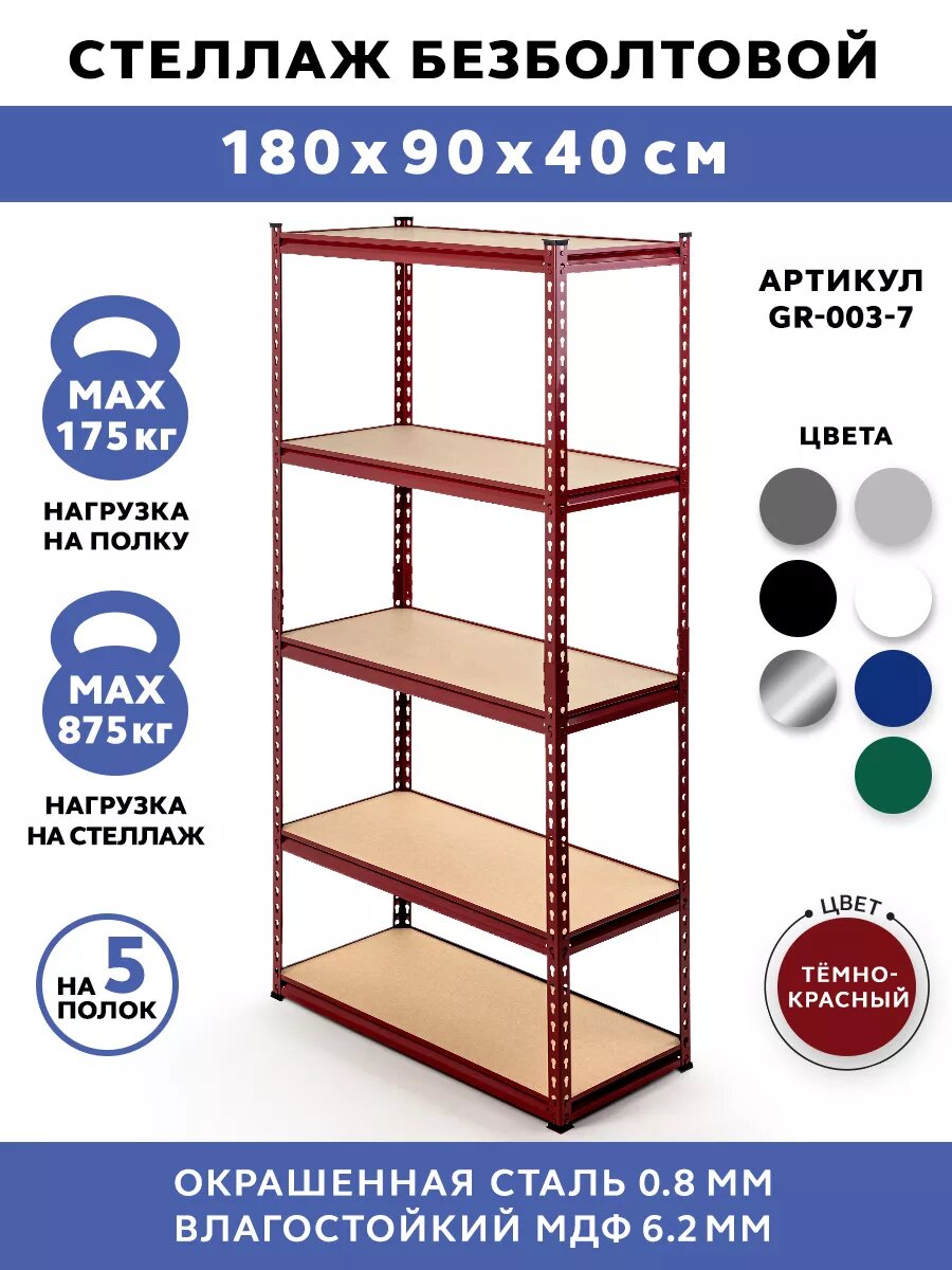 Стеллаж металлический безболтовой GASTRORAG GR-003-7, 5 полок МДФ, размеры 180х90х40 см, этажерка для кухни, мебель лофт, система хранения для дома, дачи и гаража: сравнение цен, характеристики, фото, актуальное наличие и цены.