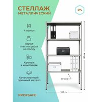 Стеллаж металлический PS 100х30х180 см, 4 полки, серый. Модульный Универсальный Напольный