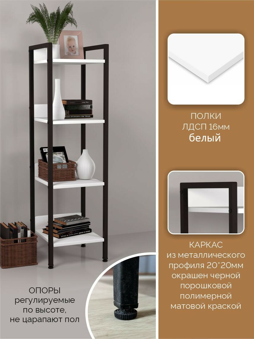 Купить Стеллаж металлический с 4-мя полками Лофт ширина 40 см, цвет черный/белый с доставкой по всей России. Стеллаж металлический с 4-мя полками Лофт ширина 40 см, цвет черный/белый: сравнение цен, характеристики, фото, актуальное наличие и цены.