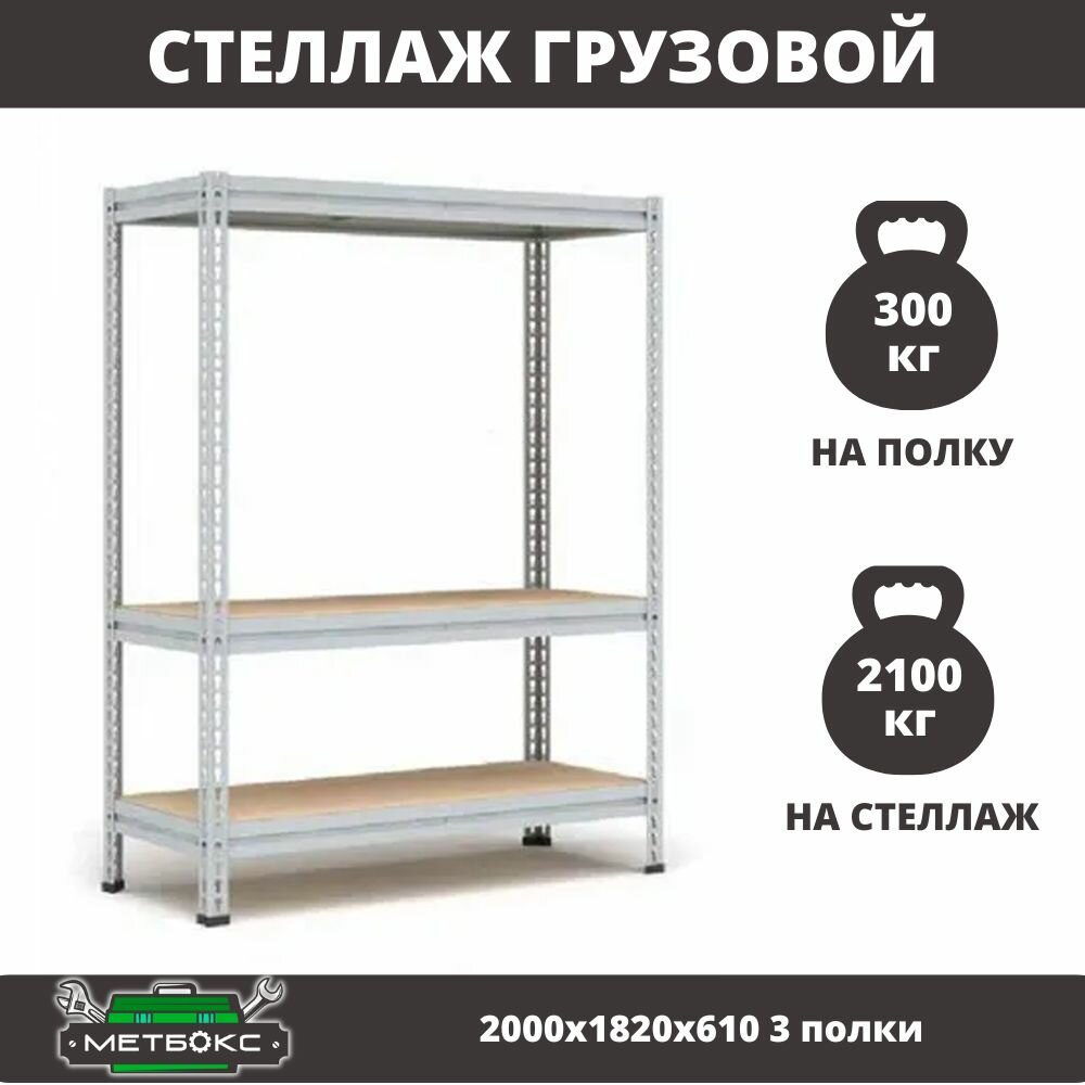 Стеллаж металлический среднегрузовой Пакс-Металл МС-Т 2000х1820х610 3 полки для гаража, склада, кладовой, архива (быстросборный, на зацепах 300 кг на полку, 2100 кг на стеллаж)