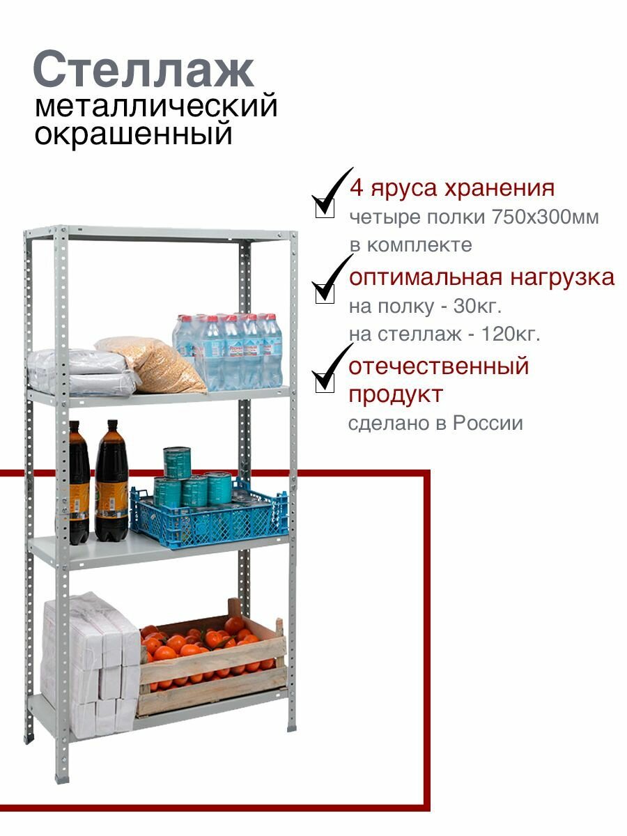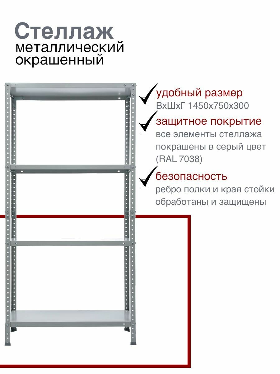Стеллаж металлический, универсальный, модульный 145х75х30 см, 4 полки, серый: сравнение цен, характеристики, фото, актуальное наличие и цены.