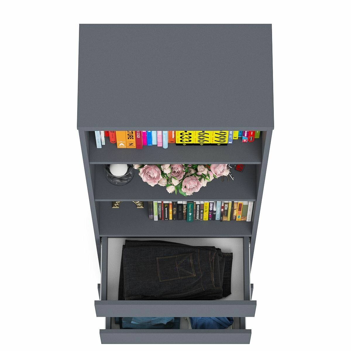 Стеллаж с ящиками Мори МСТ600.3 - минималистичный дизайн и доступная цена позволяет наслаждаться качественной и современной мебелью без значительных финансовых затрат! Стеллаж с двумя открытыми полками сверху и тремя выдвижными ящиками снизу. Продуманная конструкция позволяет убрать лишние предметы, тем самым сохраняя единый стиль оформления помещения. Отсутствие ручек главное преимущество данной модели. Роль ручек выполняют сами фасады. Открывание ящиков производится за счет пространства между планками и фасадами. Выдвижные ящики на роликовых направляющих L=300 мм. неполного выдвижения обеспечивают длительную и тихую эксплуатацию. На нижних кромках опор предусмотрены пластиковые подпятники для защиты поверхности пола от механических повреждений. Корпус и фасады изготовлены из экологически чистой ламинированной ДСП 16 мм, торцы окромлены ПХВ плёнкой 0,4 мм. Лицевая фурнитура отсутствует - все фасады открываются за край. Поставляется стеллаж с ящиками Мори МСТ600.3 в разобранном виде в надёжной упаковке, с комплектом сборочной фурнитуры и инструкцией по сборке