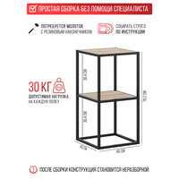 Стеллаж НАЙДИ, ЛДСП Дуб Сонома, черный муар, 40 см x 40см x 78,2 см
