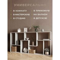 В зале он станет отличным местом для размещения вазы и коллекции фигурок. Гармонично на них располагаются книги и декоративные свечи. В спальне поможет аккуратно расположить любимые школьные фотографии или украшения. Еще одним преимуществом является то, что книжный шкаф стеллаж с ячейками можно так же поставить горизонтально. Поэтому в детской комнате его можно использовать безопасно. Дети смогут легко брать и убирать свои мягкие игрушки, что приучит их к порядку с ранних лет. Школьнику будет полезен для тетрадей и учебников. В офисном помещении станет удобным элементом для документов и журналов.
