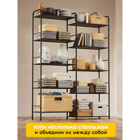 Открытая конструкция стеллажа обеспечивает легкий доступ к содержимому, а модульная конструкция позволяет легко изменять количество и расположение полок в зависимости от ваших потребностей. Максимальная нагрузка на каждую полку составляет 10 кг, что позволяет хранить на стеллаже даже тяжелые предметы.