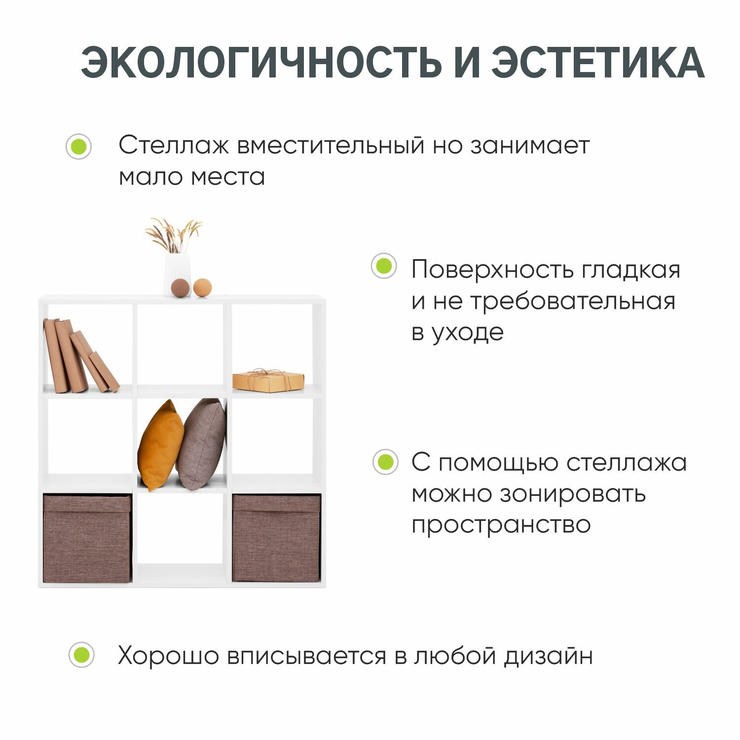 Стеллаж можно использовать в любой комнате. В детской для хранения игрушек или канц.товаров. В спальне в качестве прикроватной тумбы или стеллажа для книг. Стеллаж можно использовать для зонирования комнаты. В прихожей будет удобен как тумба для обуви или же аксессуаров. Можно использовать на кухне, в ванной, на балконе. Будет уместен в офисе.