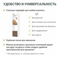 Напольный модульный стеллаж имеет устойчивую конструкцию. В комплектацию входит металлический уголок для крепления к стене, что исключает падение стеллажа. Благодаря креплениям к стене стеллаж при максимальной нагрузке не упадет. Дюбель или саморез для крепления приобретается самостоятельно в зависимости от материала стены, к которой будет крепиться шкаф.