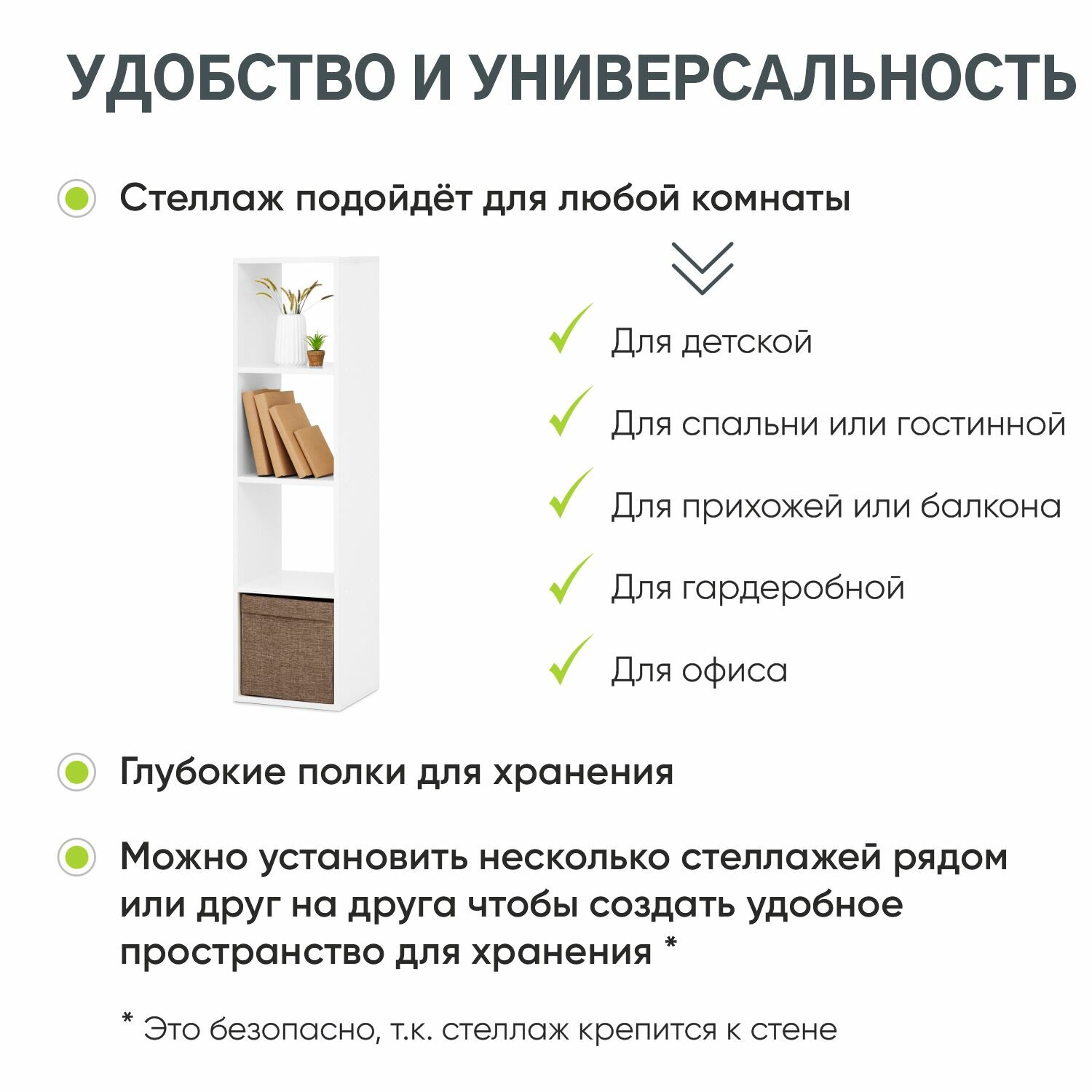 Стеллаж можно использовать в любой комнате. В детской для хранения игрушек или канц.товаров. В спальне в качестве прикроватной тумбы или стеллажа для книг. Стеллаж можно использовать для зонирования комнаты. В прихожей будет удобен как тумба для обуви или же аксессуаров. Можно использовать на кухне, в ванной, на балконе. Будет уместен в офисе.