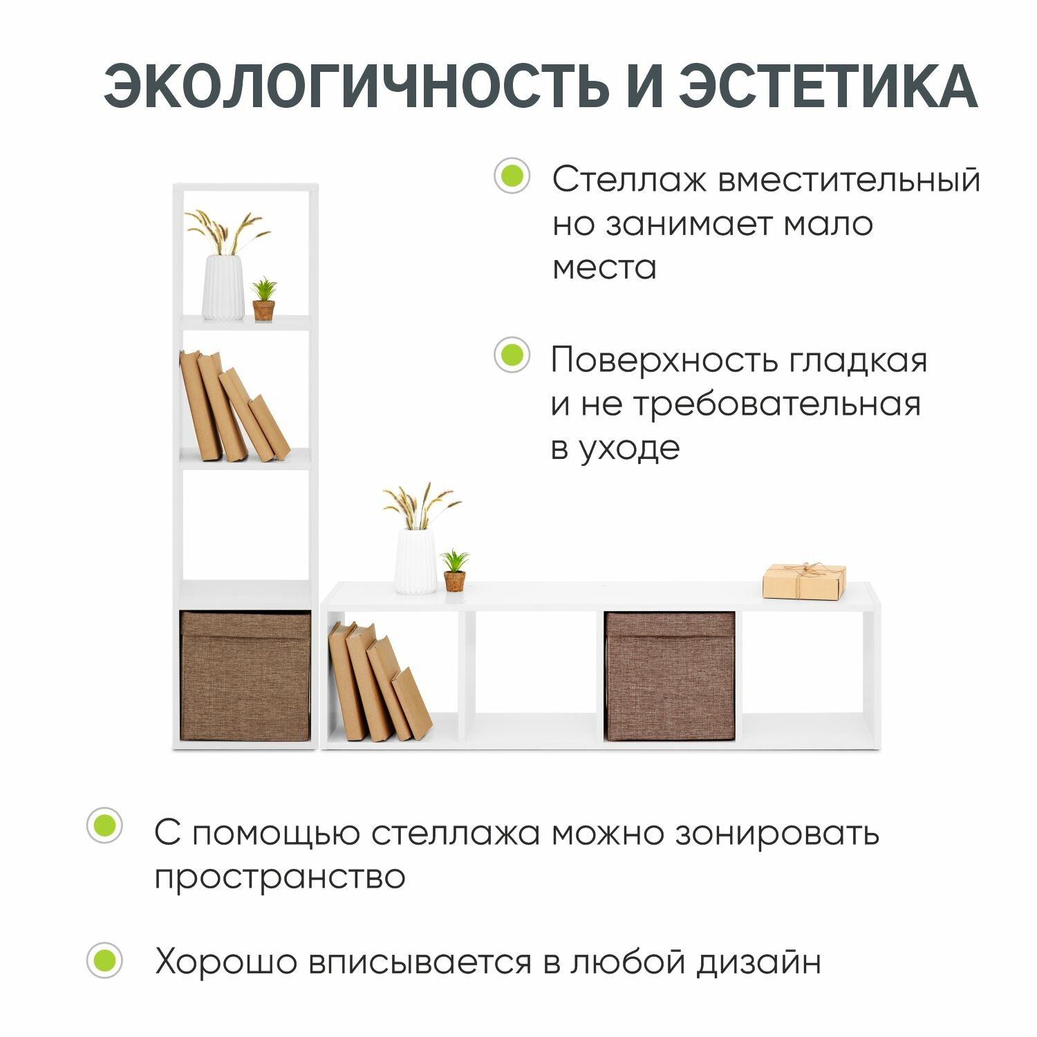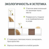 Стеллаж изготовлен из ЛДСП белого цвета. Все используемые при производстве материалы полностью экологичны и безопасны.