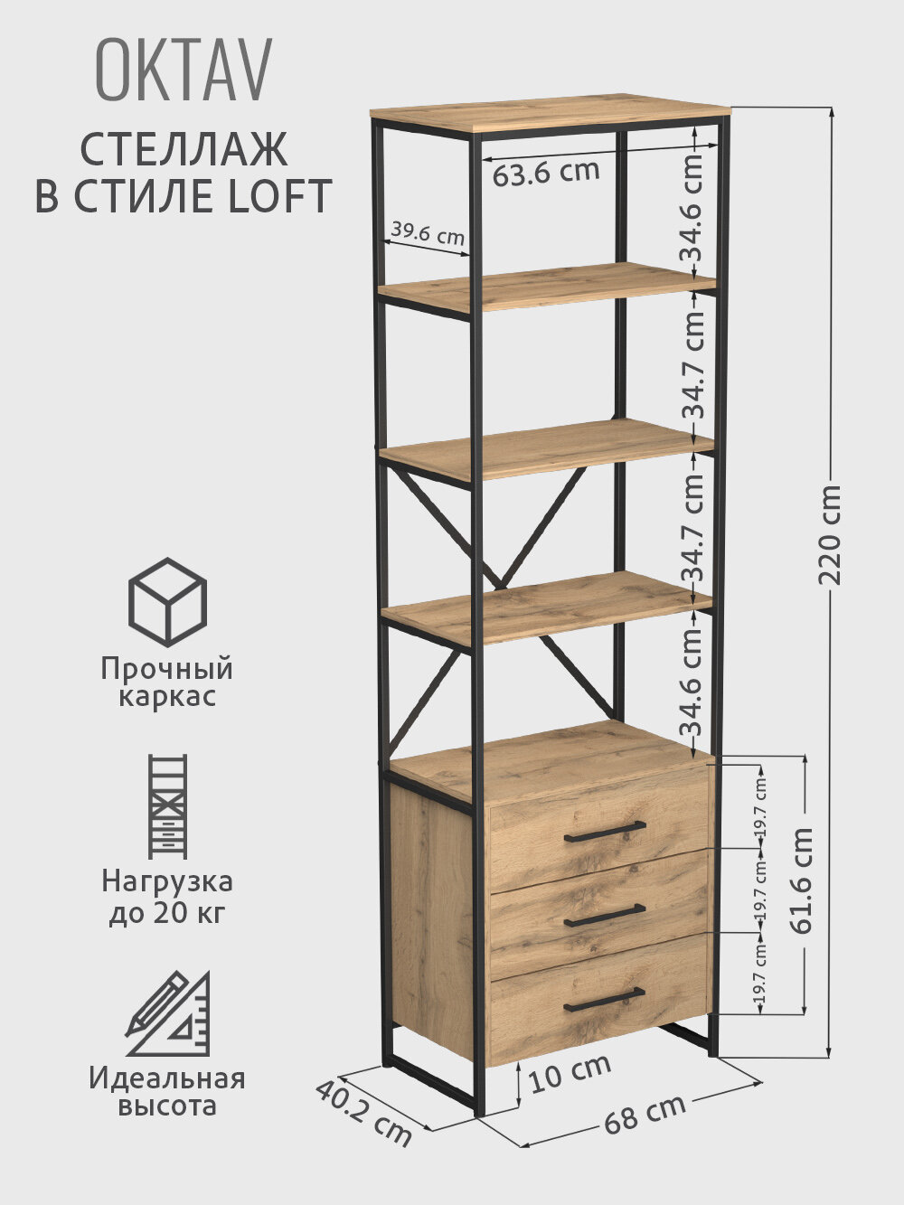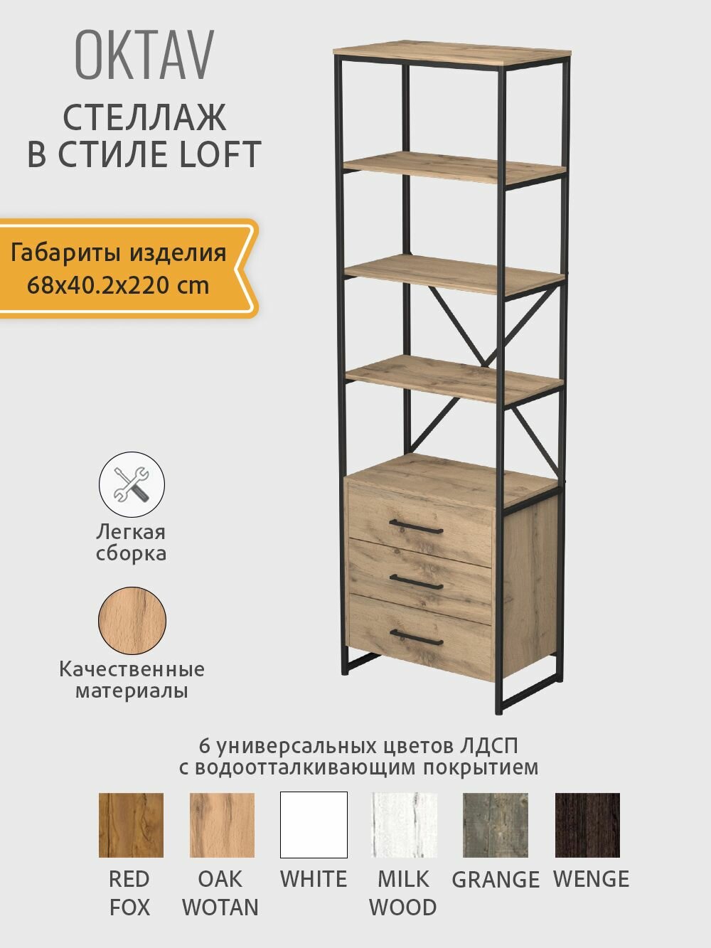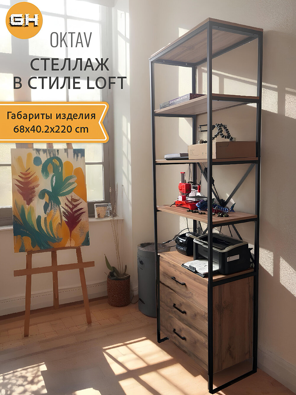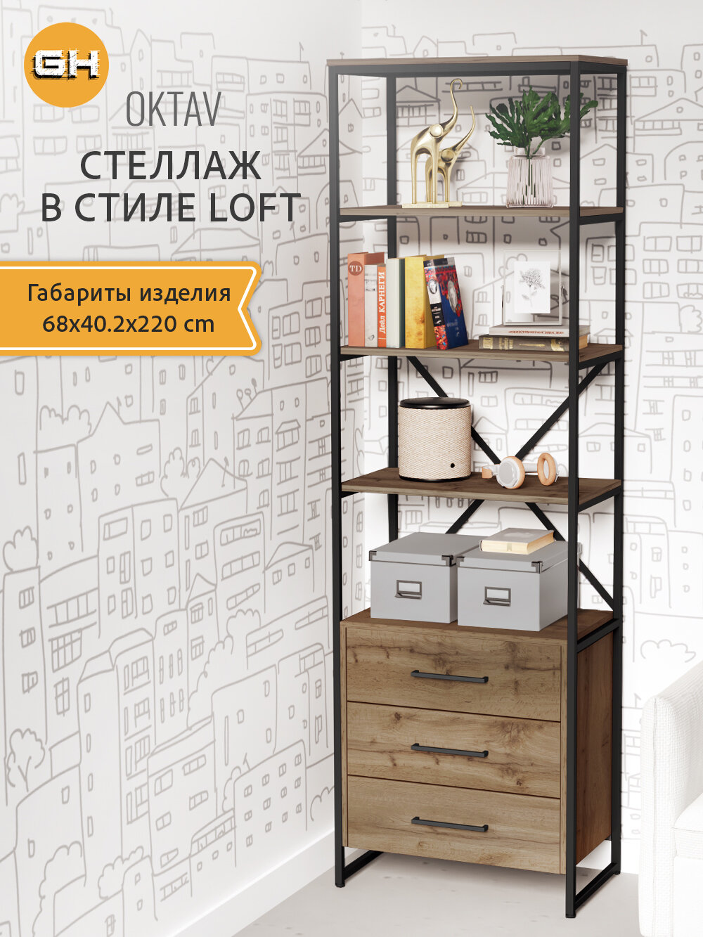 Стеллаж OKTAV loft, дуб вотан, напольный, металлический шкаф с ящиками и полками, 68*40,2*220 см, гростат: сравнение цен, характеристики, фото, актуальное наличие и цены.