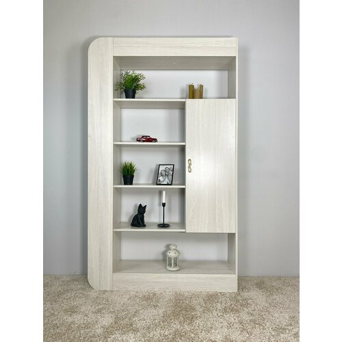 Стеллаж выполнен в современном стиле, что позволяет ему гармонично вписаться в любой интерьер. Цвет анкор светлый придает изделию легкость и свежесть.