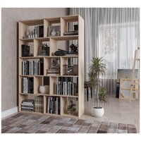 Стеллаж имеет 15 полок, что позволяет разместить на них книги, сувениры, аксессуары и другие предметы.