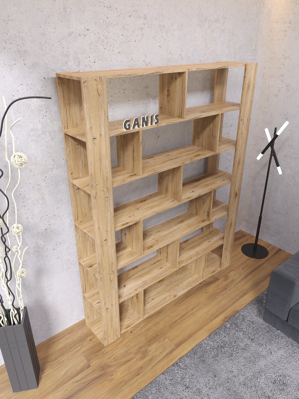 Купить Стеллаж Перегородка в стиле Лофт модель Ника 180 Дуб Вотан (ШхВхГ) 180х200х30 см. с доставкой по всей России.