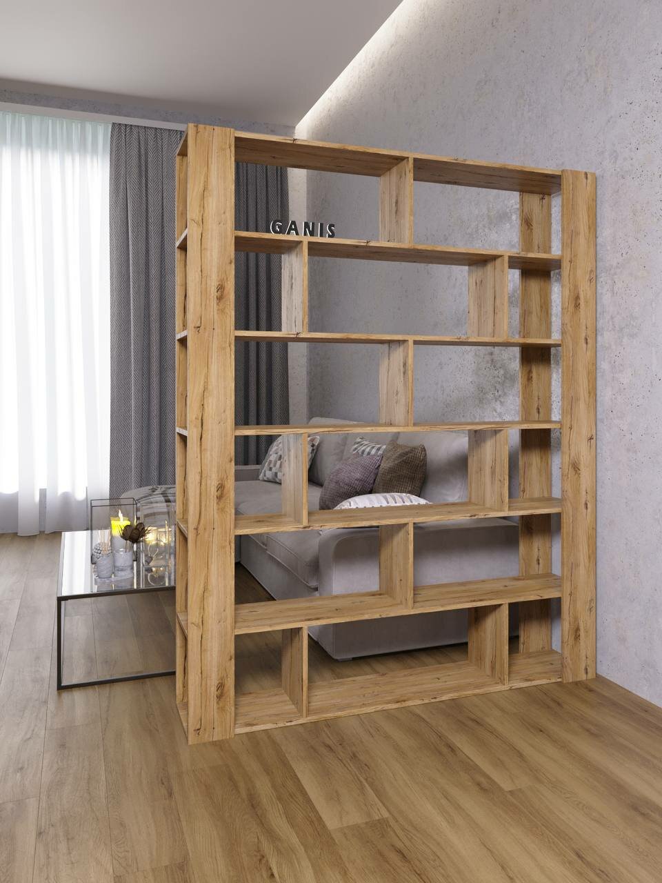 Стеллаж Перегородка в стиле Лофт модель Ника 180 Дуб Вотан (ШхВхГ) 180х200х30 см.: сравнение цен, характеристики, фото, актуальное наличие и цены.