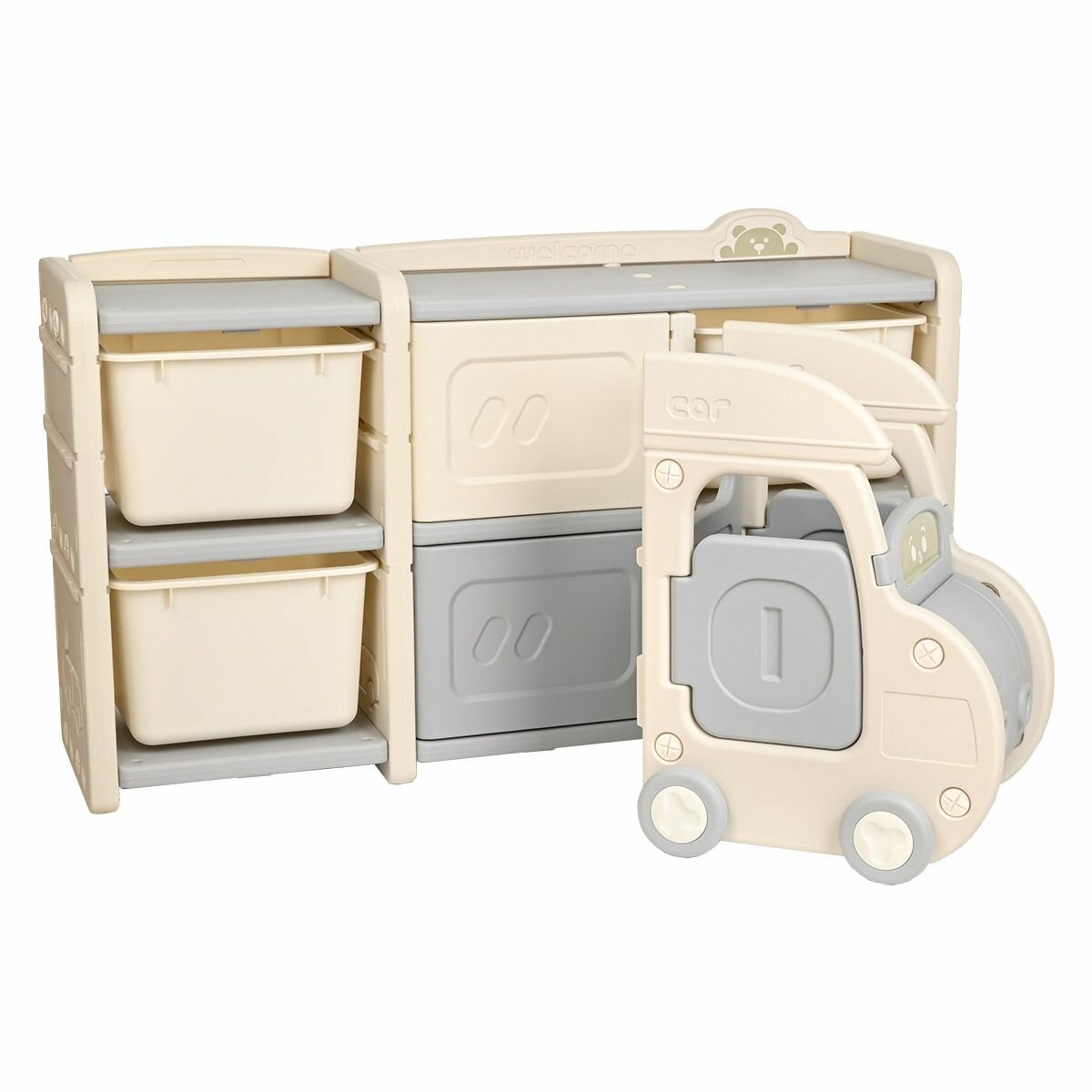 | Дополнительная информация | стеллаж имеет:- четыре широкие полки, на которых расположены 8 одинаковых по размеру ящиков открытого типа - два прямоугольных элемента с тремя полками открытого типа;размер ящиков: 33х31.5х11 см |