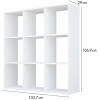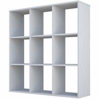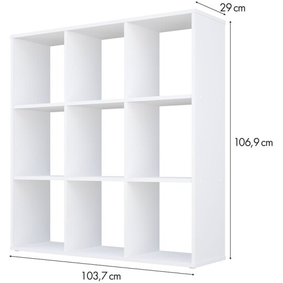 Модель имеет 9 секций. Крепится к стене с помощью специальных болтов и уголков. Материал изделия: ЛДСП. Подходит для хранения предметов, зонирования жилого помещения и декоративного использования. размер, см: высота-106,9ширина- 103,7глубина- 29. размер полки, см: 33х33х29
