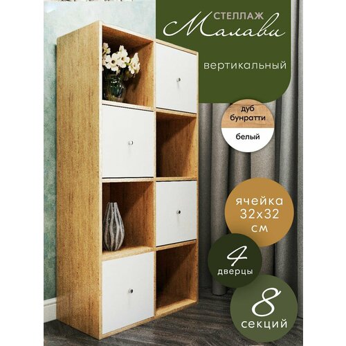 Стеллаж с дверцами Wood&Stone 8 секций, 68,8х34,5х136,5 дуб бунратти/белый: сравнение цен, характеристики, фото, актуальное наличие и цены.