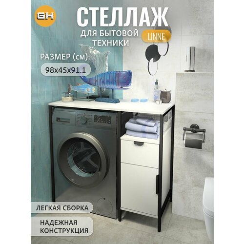 Стеллаж с ящиками для ванной LINNE loft, белый, для стиральной машины, этажерка для ванной, 98х45х91.1 см, гростат