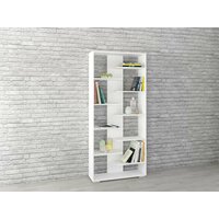 Стеллаж выполнен в стиле модерн, что позволяет ему гармонично вписаться в любой интерьер. Белый цвет корпуса и полок придает изделию легкость и свежесть.