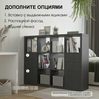 С помощью дополнительных опций, представленных в каталоге RIDDLE, создайте собственную систему хранения. Дополните стеллаж: выдвижными ящиками, распашной фасад Front - артикул маркета 4457147316, комплектом задних стенок Wall - артикул маркета 4470860478, вставкой с двумя выдвижными ящиками Box - артикул маркета 4486689884.