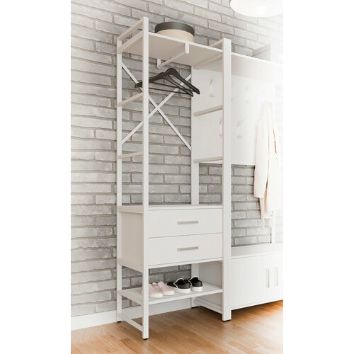 Стеллаж со штангой Микс для прихожей 80 см, Белый