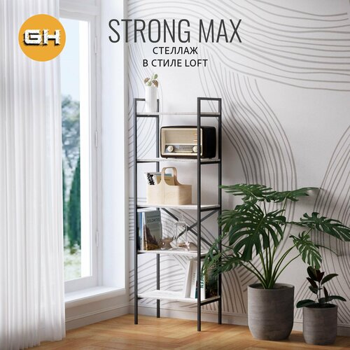 Стеллаж STRONG MAX loft, светло-серый, металлический напольный с 5 деревянными полками из ЛДСП, 60.5х35х181 см, гростат: сравнение цен, характеристики, фото, актуальное наличие и цены.