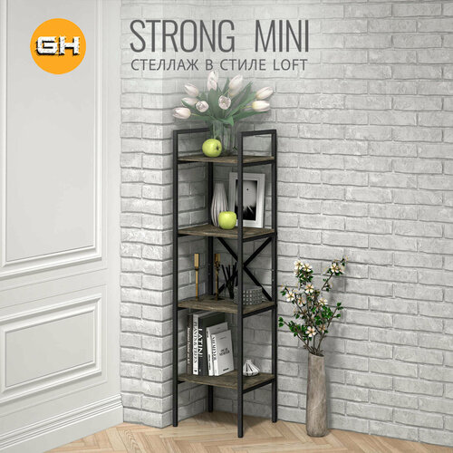 Стеллаж STRONG mini loft, серый, модульный, напольный с 4 полками, 147х40х35 см, гростат: сравнение цен, характеристики, фото, актуальное наличие и цены.