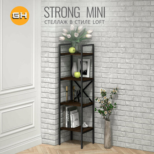 Стеллаж STRONG mini loft, темно-коричневый, модульный, напольный с 4 полками, 147х40х35 см, гростат: сравнение цен, характеристики, фото, актуальное наличие и цены.