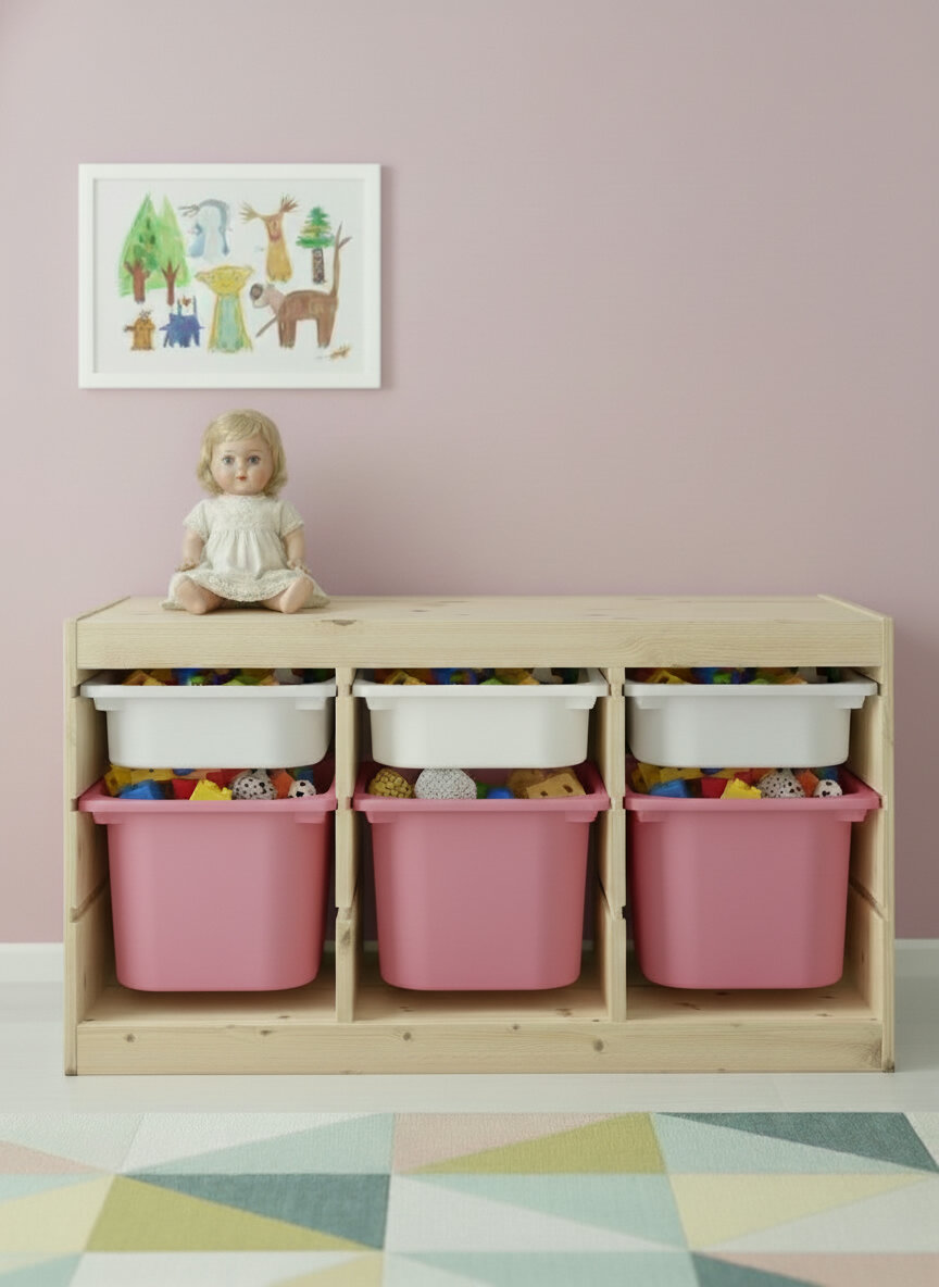 Стеллаж Труфаст горизонтальный с контейнерами, белый/розовый