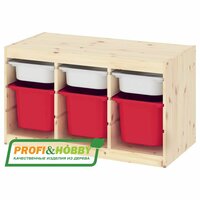 Улучшенная версия TROFAST от Profi&Hobby. Серия деревянной мебели для хранения с легкими пластиковыми контейнерами труфаст . Каркас шкафа изготовлен из массива сосны без покраски. Поверхность изделия отшлифована, готова к покрытию, по желанию можно тонировать в любой цвет. Труфаст - серия удобной и устойчивой мебели для хранения. Создайте индивидуальное решение для хранения, комбинируя разные каркасы и контейнеры. В каркасе подготовлены несколько пазов, в которые вы можете установить контейнеры и в любой момент при необходимости изменить их положение. Расположите модули для хранения на удобной для ребенка высоте, и он сможет самостоятельно достать нужную вещь и навести порядок.
