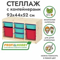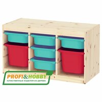 Улучшенная версия TROFAST от Profi&Hobby. Серия деревянной мебели для хранения с легкими пластиковыми контейнерами труфаст. Каркас шкафа изготовлен из массива сосны без покраски. Поверхность изделия отшлифована, готова к покрытию, по желанию можно тонировать в любой цвет. Труфаст - серия удобной и устойчивой мебели для хранения. Создайте индивидуальное решение для хранения, комбинируя разные каркасы и контейнеры. В каркасе подготовлены несколько пазов, в которые вы можете установить контейнеры и в любой момент при необходимости изменить их положение. Расположите модули для хранения на удобной для ребенка высоте, и он сможет самостоятельно достать нужную вещь и навести порядок.