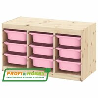 Улучшенная версия TROFAST от Profi&Hobby. Серия деревянной мебели для хранения с легкими пластиковыми контейнерами труфаст . Каркас шкафа изготовлен из массива сосны без покраски. Поверхность изделия отшлифована, готова к покрытию, по желанию можно тонировать в любой цвет. Труфаст - серия удобной и устойчивой мебели для хранения. Создайте индивидуальное решение для хранения, комбинируя разные каркасы и контейнеры. В каркасе подготовлены несколько пазов, в которые вы можете установить контейнеры и в любой момент при необходимости изменить их положение. Расположите модули для хранения на удобной для ребенка высоте, и он сможет самостоятельно достать нужную вещь и навести порядок. Деревянный стеллаж труфаст продаётся в разобранном виде, вся необходимая фурнитура для несложной сборки в комплекте.