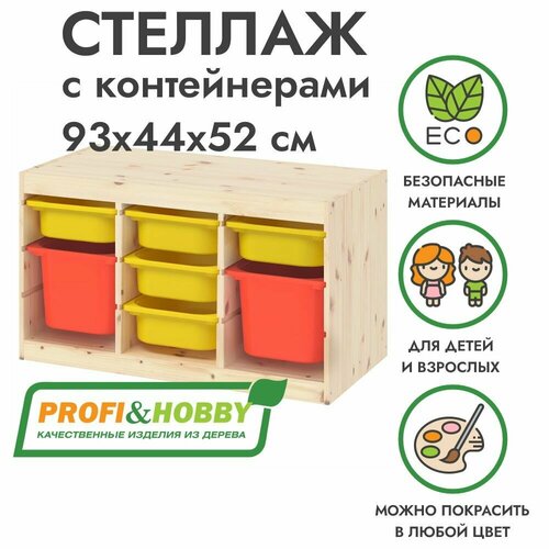 Улучшенная версия TROFAST от Profi&Hobby. Серия деревянной мебели для хранения с легкими пластиковыми контейнерами труфаст . Каркас шкафа изготовлен из массива сосны без покраски. Поверхность изделия отшлифована, готова к покрытию, по желанию можно тонировать в любой цвет. Труфаст - серия удобной и устойчивой мебели для хранения. Создайте индивидуальное решение для хранения, комбинируя разные каркасы и контейнеры. В каркасе подготовлены несколько пазов, в которые вы можете установить контейнеры и в любой момент при необходимости изменить их положение. Расположите модули для хранения на удобной для ребенка высоте, и он сможет самостоятельно достать нужную вещь и навести порядок. Деревянный стеллаж труфаст продаётся в разобранном виде, вся необходимая фурнитура для несложной сборки в комплекте.