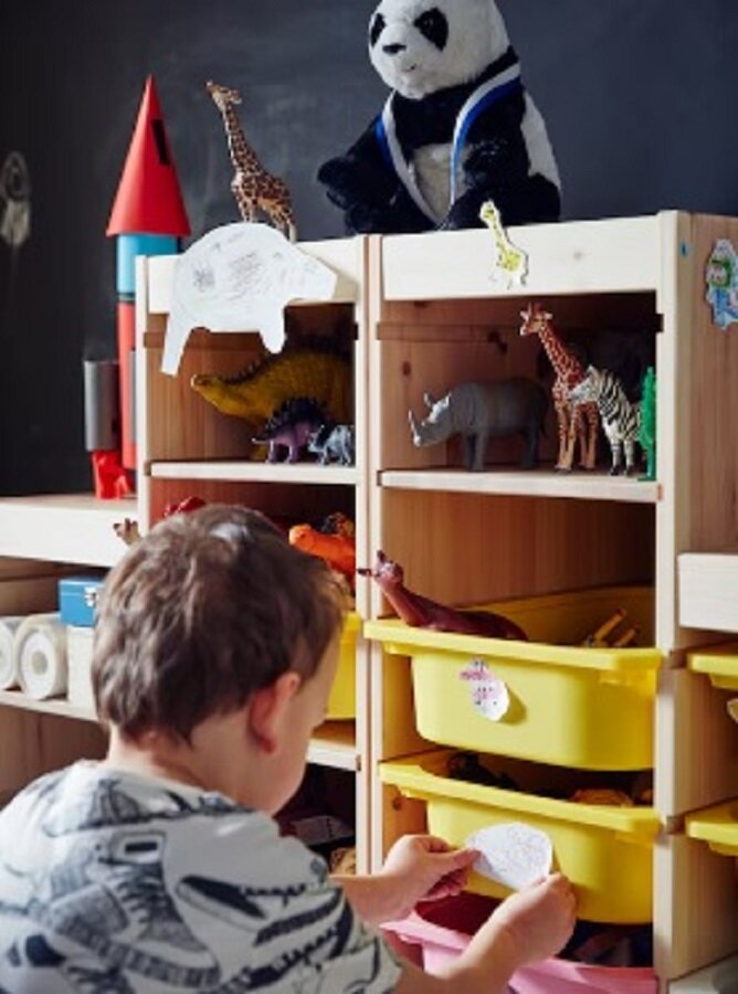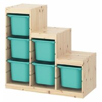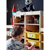 В комплекте с каркасом идут 6 контейнеров Труфаст размером 42*30*23, что позволяет организовать хранение игрушек и других предметов в удобном порядке. Благодаря наличию пазов в каркасе, вы сможете легко установить контейнеры и полки на удобной для ребенка высоте.