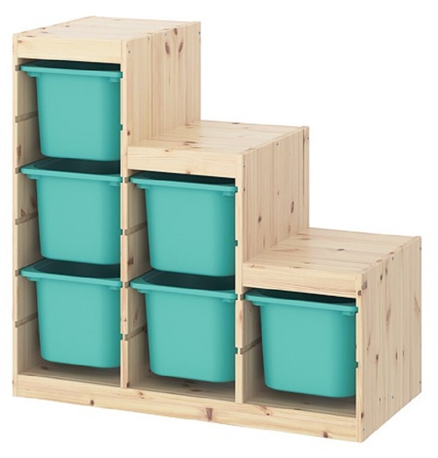Стеллаж Труфаст лесенка с контейнерами – это удобное и практичное решение для хранения игрушек и организации пространства в детской комнате. Бирюзовый цвет стеллажа и его современный дизайн подойдут для любого интерьера.