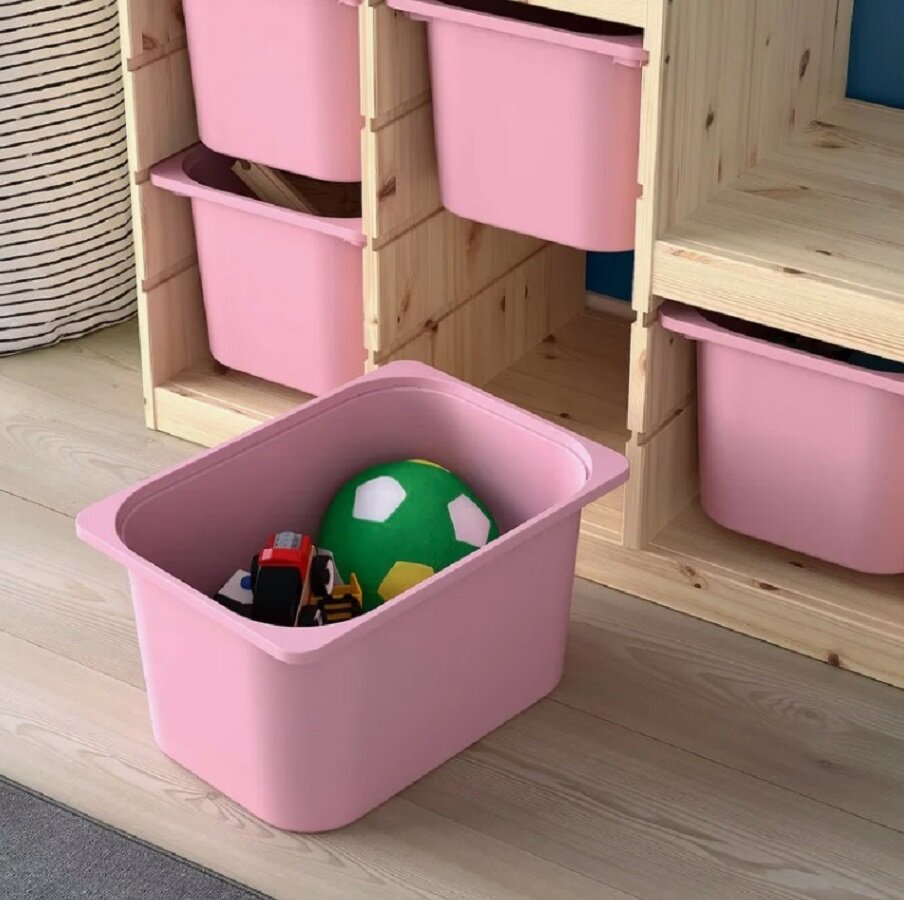Особенностью данного стеллажа является его модульная конструкция. В комплекте идут каркас лесенка Труфаст и 6 контейнеров Труфаст 42*30*23. Вы можете легко установить контейнеры и полки на удобной для ребенка высоте, а при необходимости легко изменить их положение.